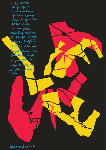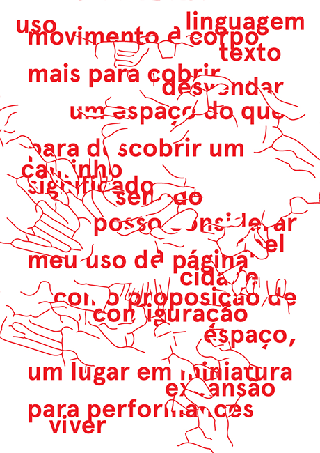 Um segundo exercício foi interferir em frases do artista Vito Acconci, em que ele fala sobre performatividade na escrita e na cidade, e sobrepô-las a um grid tortuoso, retirado da cidade de São Paulo.